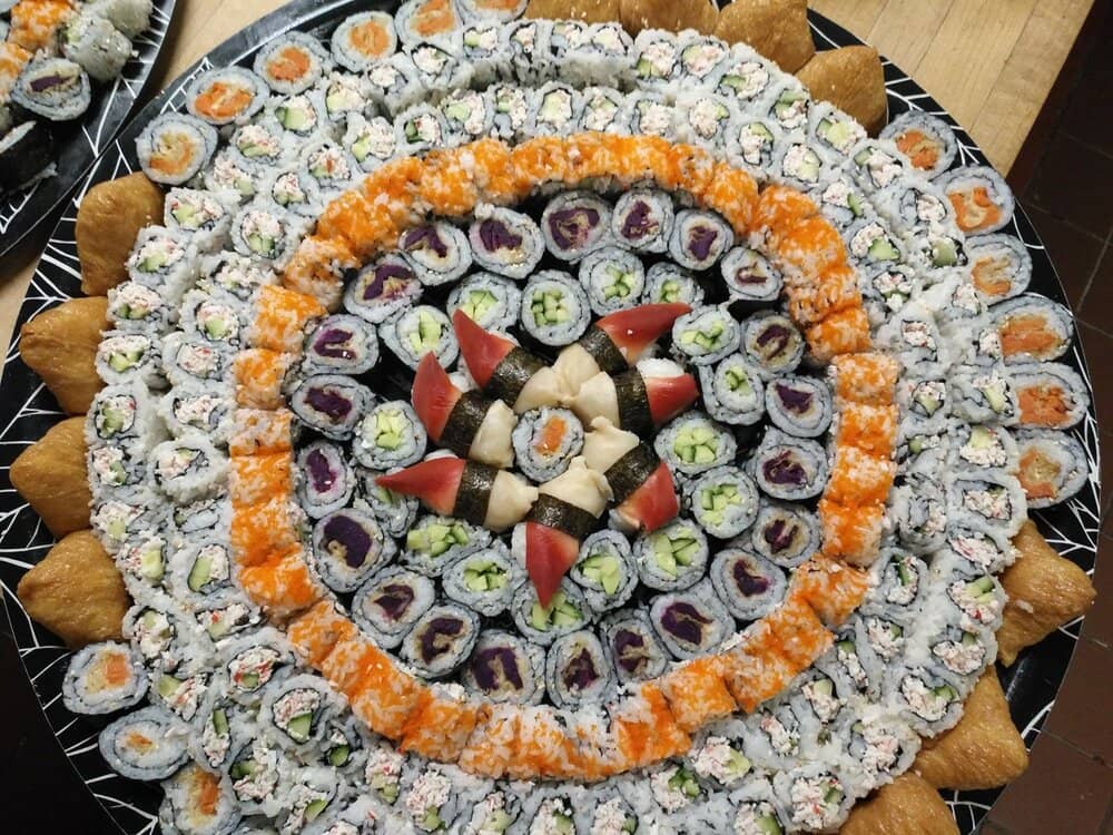 The expansive menu includes various sushi, tempura, gyoza, and teriyaki chicken, catering to all tastes.