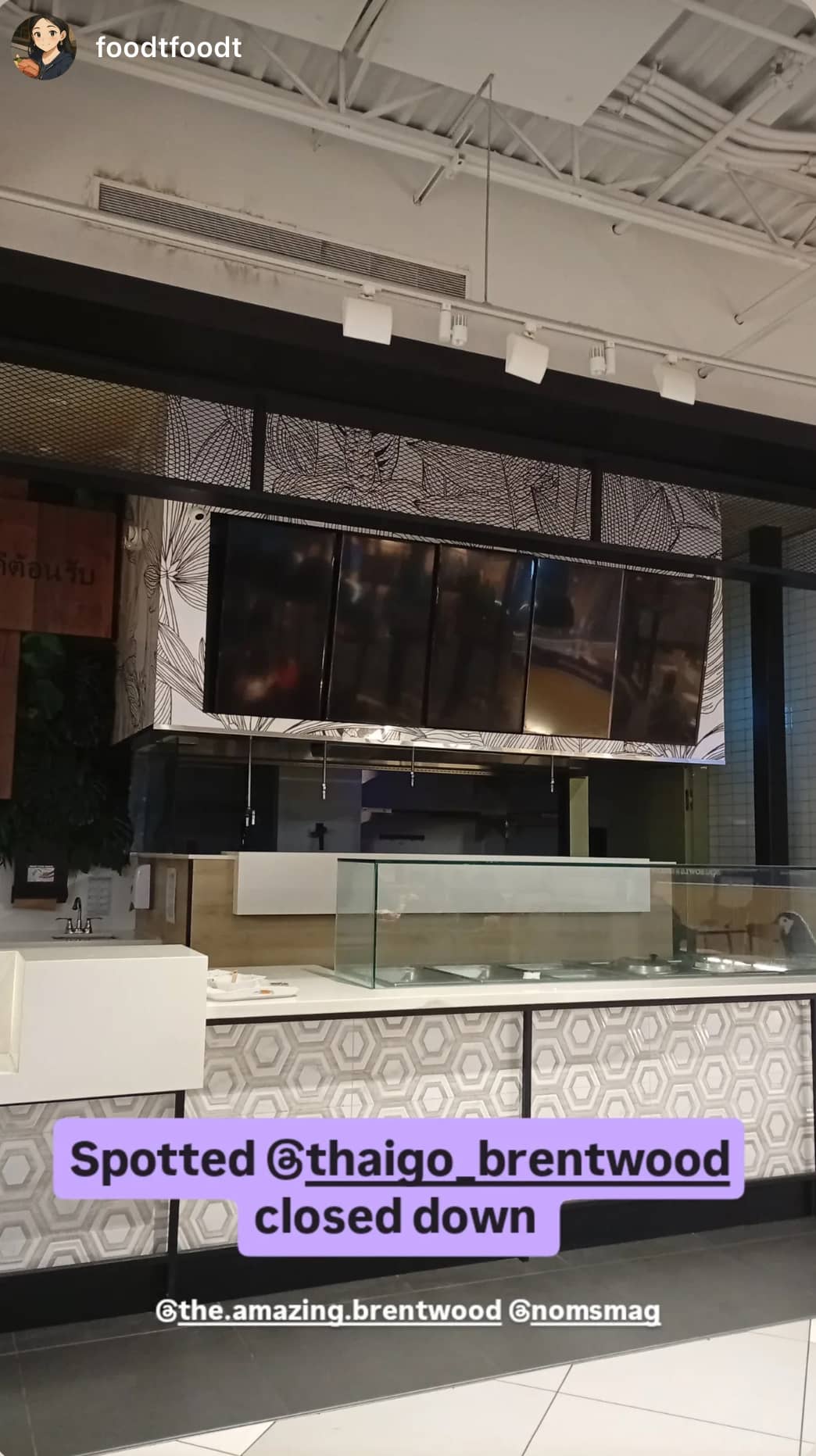 A Noms Magazine community member (foodtfoodt) shared with us that the ThaiGo stall at The Amazing Brentwood’s food court has been cleared out.