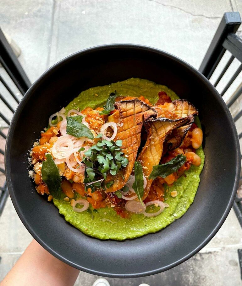 Swing by for brunch and order the Turkish Eggs with poached eggs, tangy yogurt, chili oil, and sourdough doing the most.