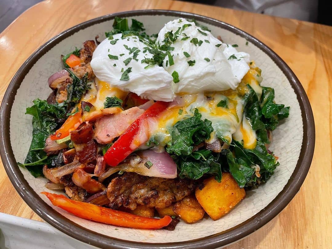 The G.O Classic Platter is hearty AF – crispy pork belly, perfect eggs, all the good stuff.