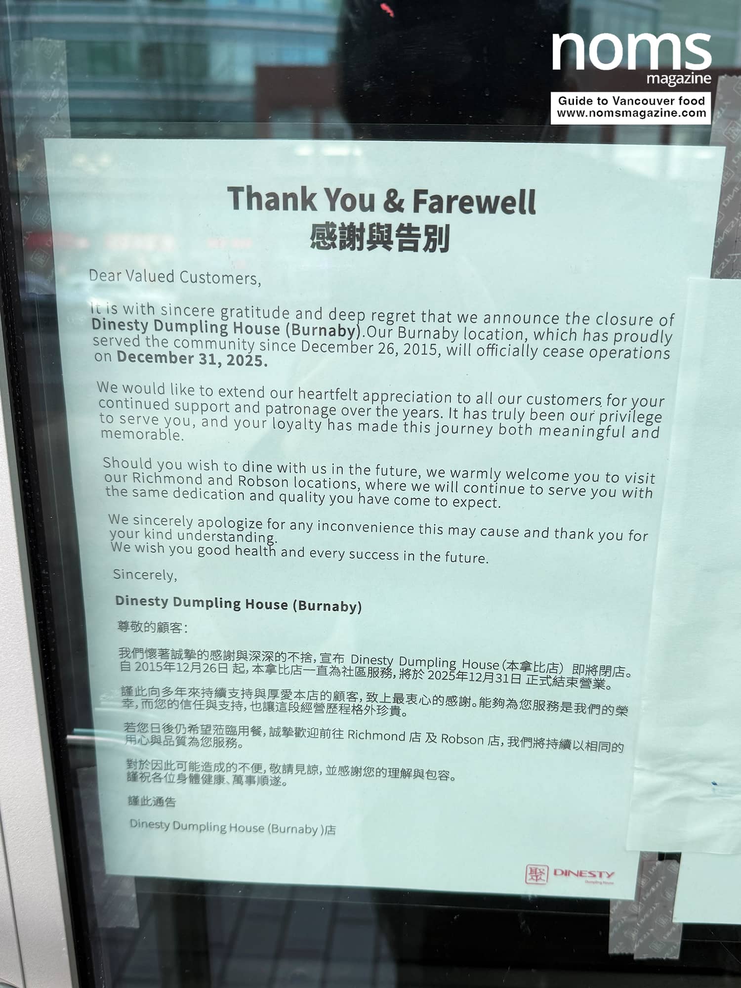 Burnaby locals have lost another reliable spot for soup dumplings this week.