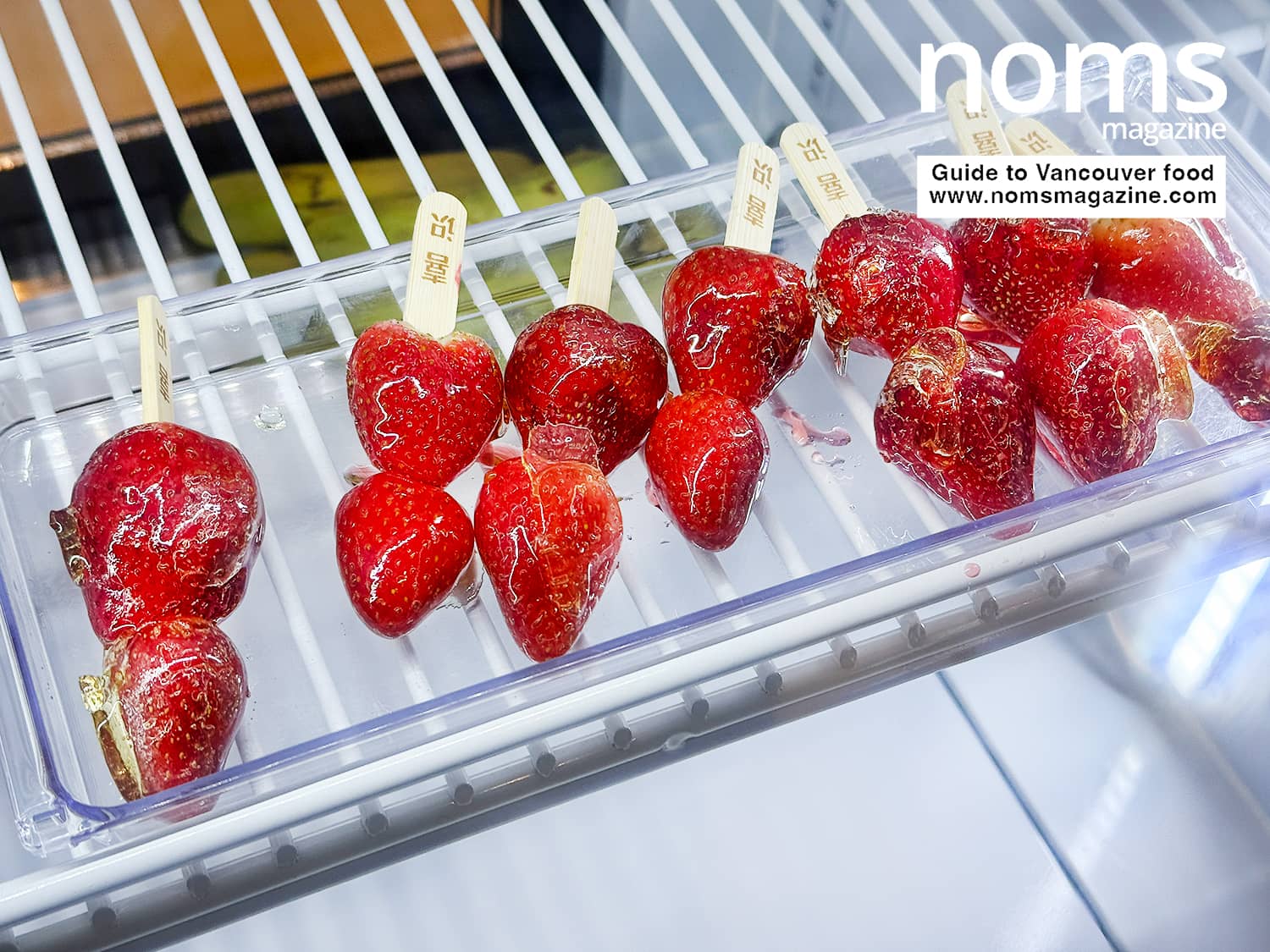 At the Burnaby shop, you will find an eye-catching lineup of tanghulu skewers, with fresh fruits like strawberries, grapes, and hawthorn, all coated in the brand’s signature crackly glaze.