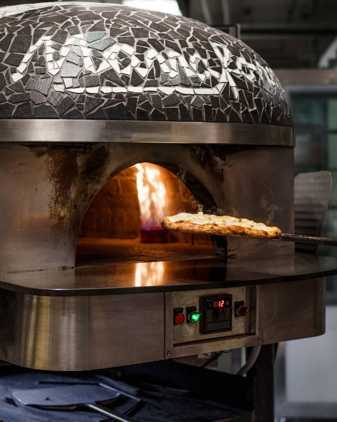 Pizza wise: Neapolitan-style pies such as Margherita Classica with San Marzano tomatoes, Mortadella with stracciatella and pistachio, and Parmigiana topped with eggplant caponata.