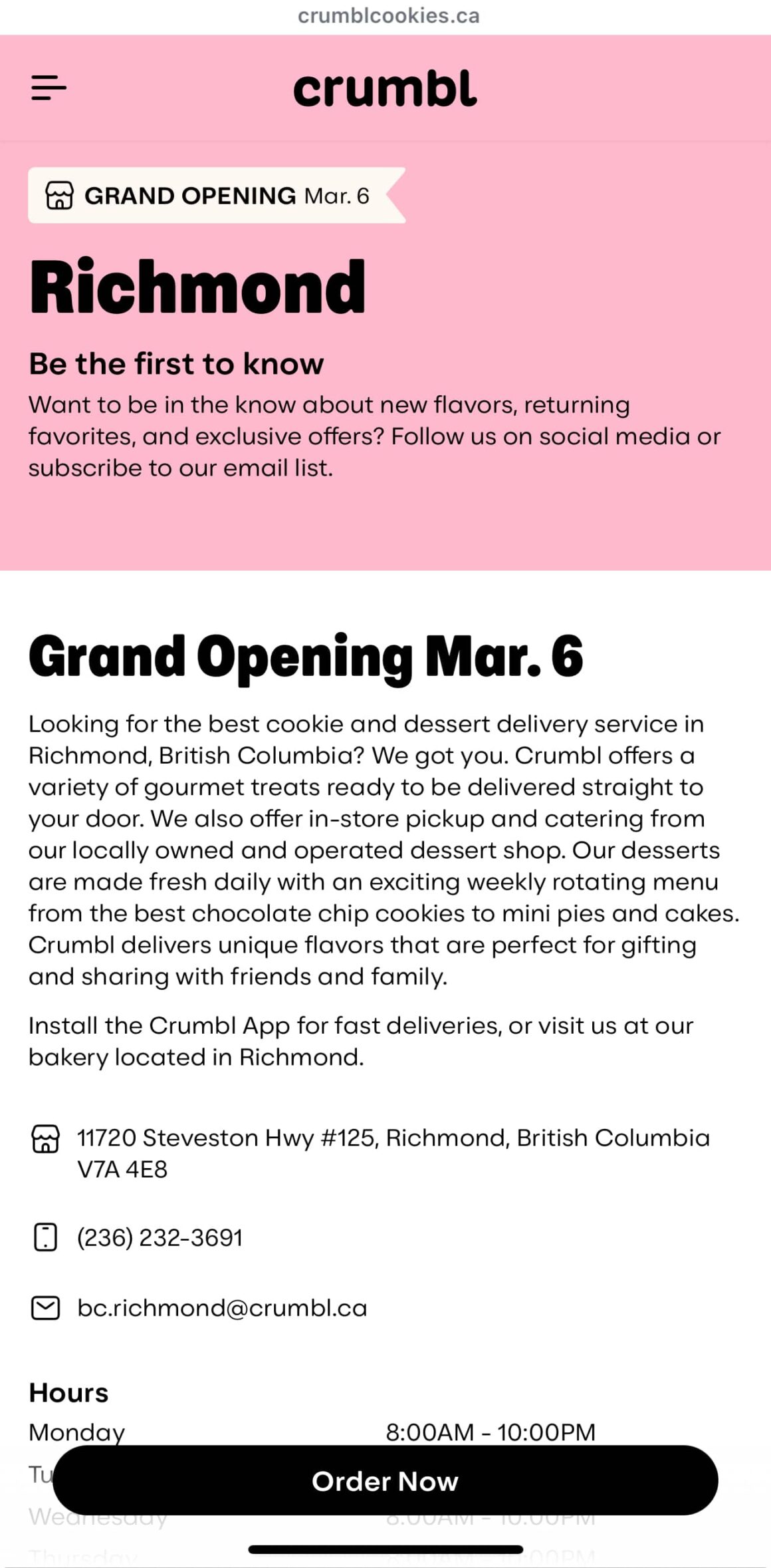 The new shop is at 11720 Steveston Hwy #125, Richmond, BC V7A 4E8. This will be BC’s second Crumbl location.