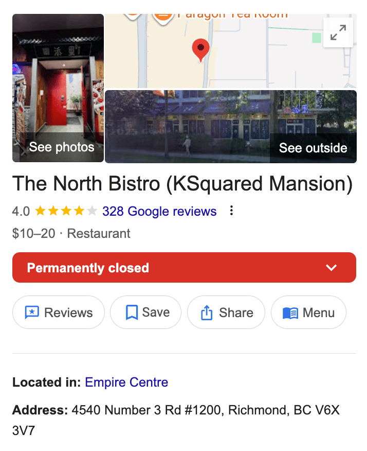 On Chinese social media, posts started circulating that The North Bistro has been tagged as permanently closed on Google.