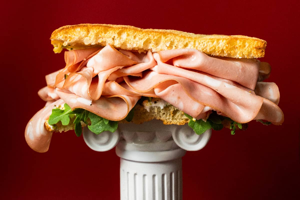 Soft, fragrant, and pressed just enough to hold layers of prosciutto, capocollo, fior di latte, arugula, and olive oil.