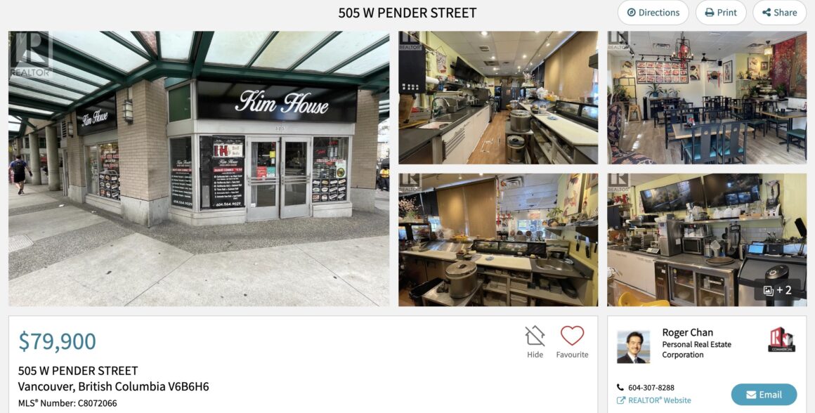 This listing adds Kim House to the growing list of Vancouver restaurants now up for sale, alongside Bada and Kurotaki.