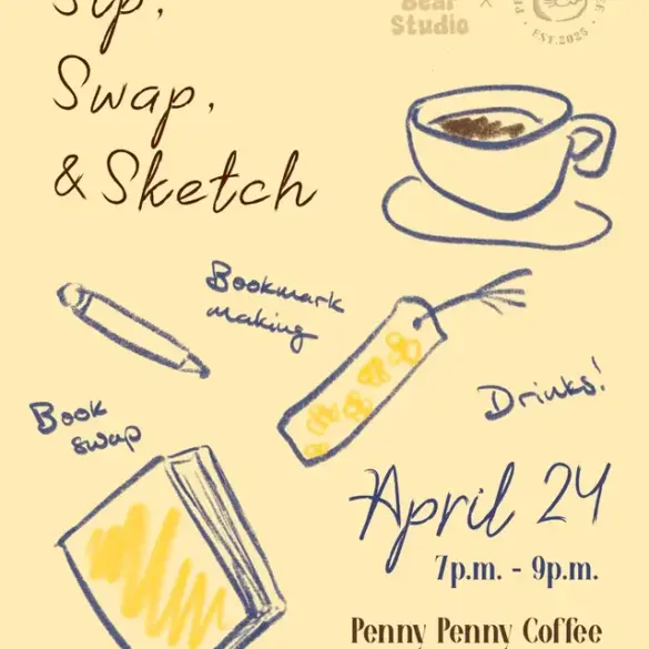 Sip, Swap, & Sketch is a cozy creative night at Penny Penny Coffee. Guests can bring a gently used book... Read More