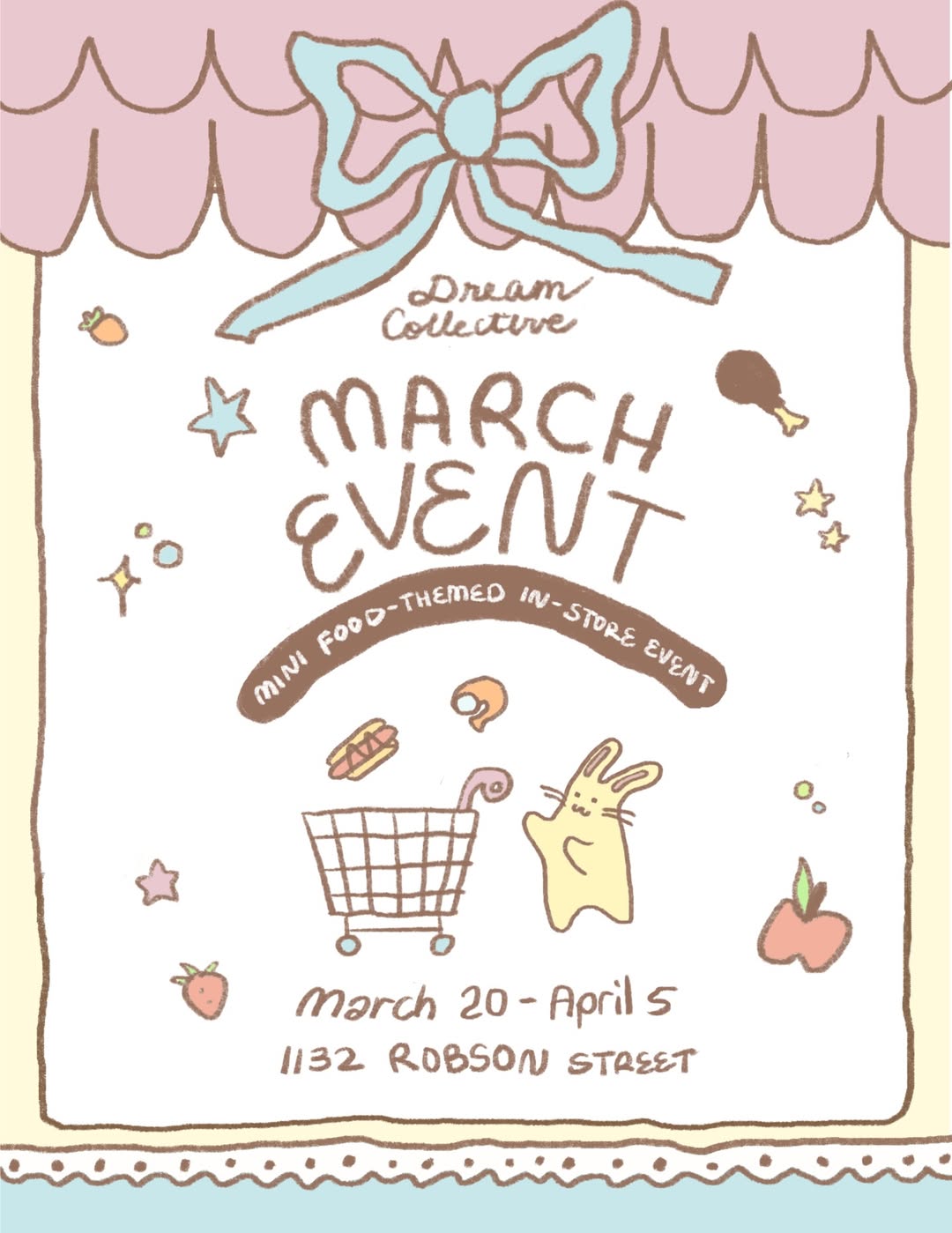 Dream Collective is hosting a mini food-themed in-store event. Customers earn stamps, stickers, and food trinkets by spending $15 at participating local vendors.