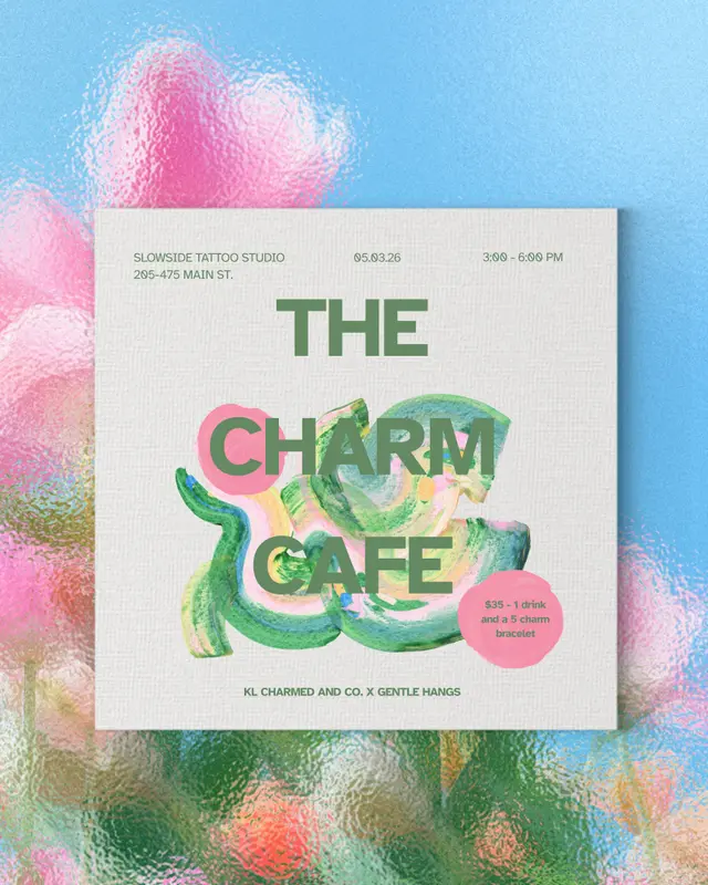 The Charm Cafe is a cozy charm-making hangout where guests can create a custom 5-charm bracelet while sipping on a drink.