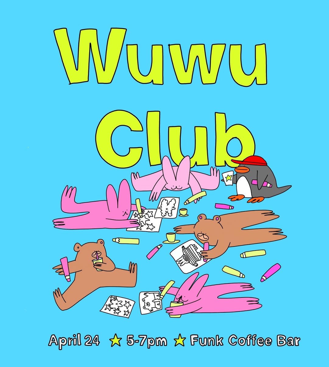 Wuwu Coloring Club is bringing a cozy, small-group hangout to Funk Coffee Bar this April.