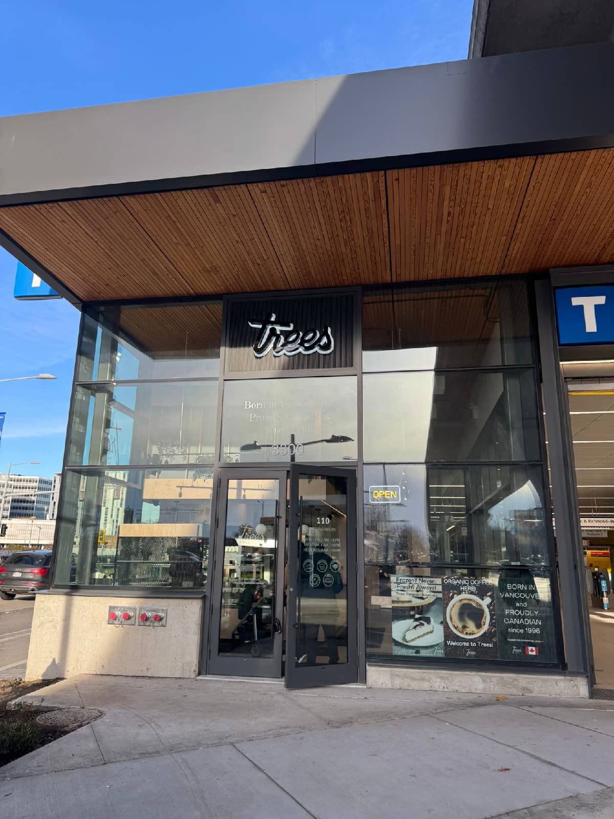 Trees Organic Coffee and Cheesecake has officially opened at Capstan Station and locals are already peeking inside to see if the legendary Vancouver cheesecake hits the same outside the city.