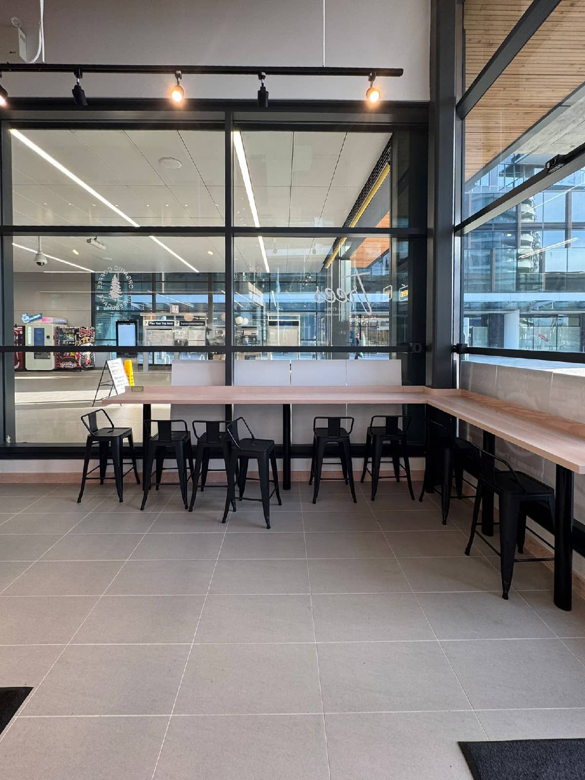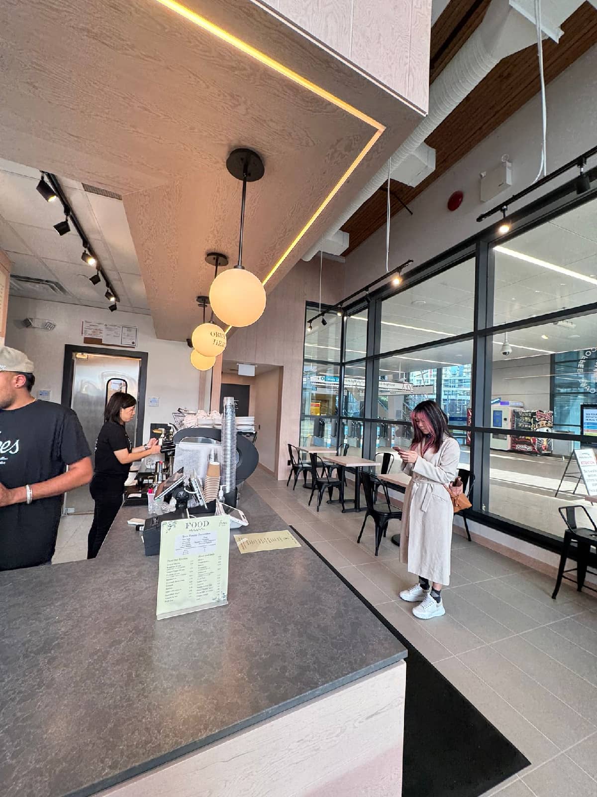 It feels like a spot made for quick coffee breaks, quiet laptop time, or those accidental long chats that happen when you run into someone you know on the Canada Line.