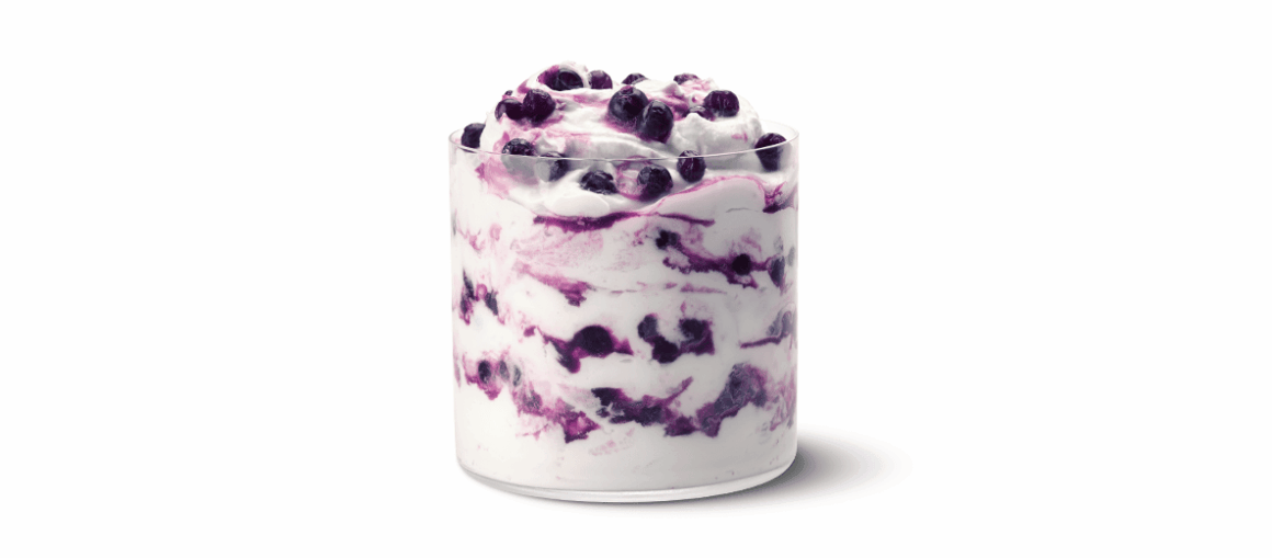 It blends vanilla soft serve with blackberry popping pearls and wild berry sauce.