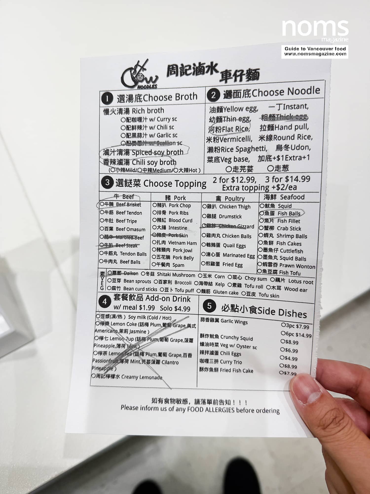 Anyway – like most cart noodle concepts, you grab the order sheet, pick a broth first, then a noodle base, then your toppings.