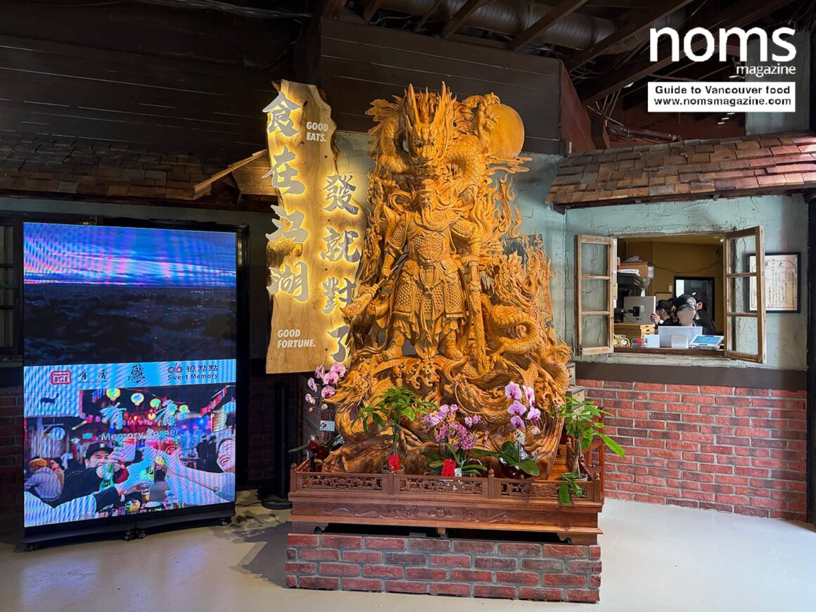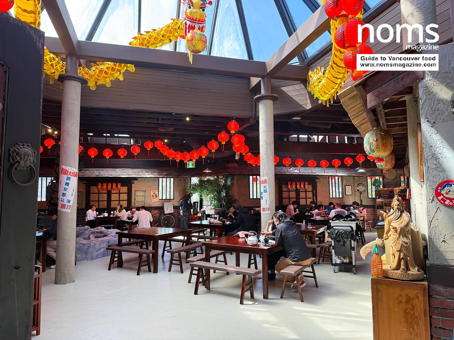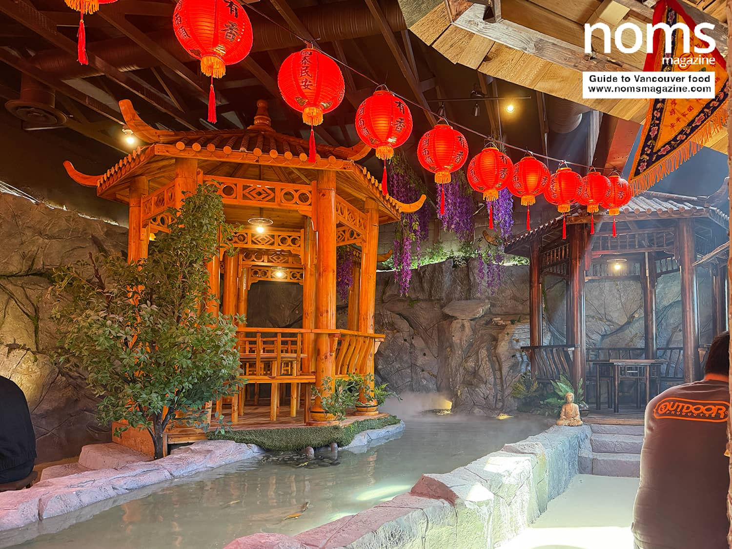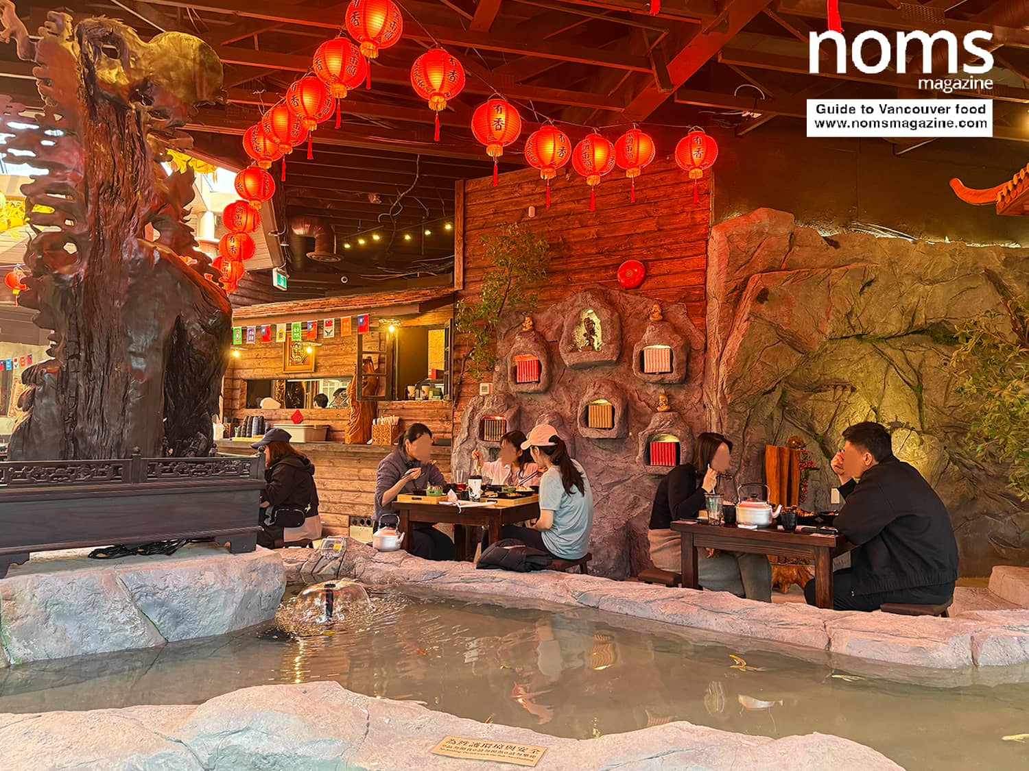 Between the red lanterns, indoor pond, live fish, cave-like walls, wooden pavilions, statues, and vintage corners, this is the kind of restaurant where people pull out their phones before they open the menu.