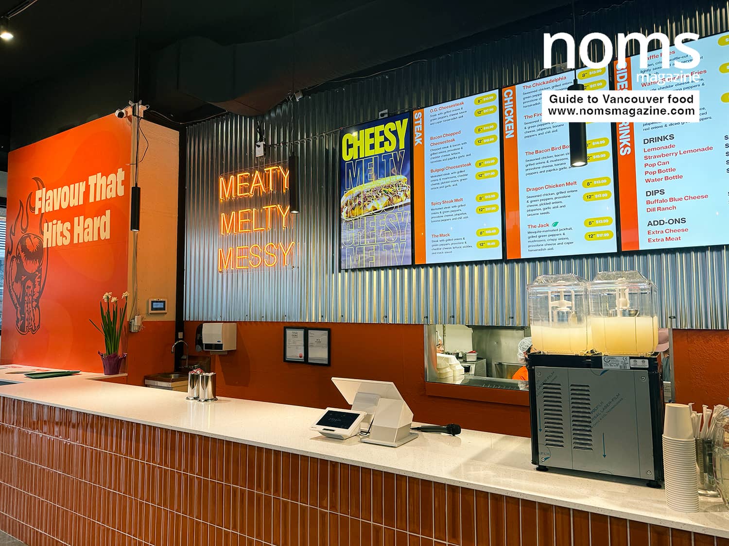 A neon sign on the wall screams “MEATY MELTY MESSY,” which pretty much sets the expectation for the meal you are about to have.