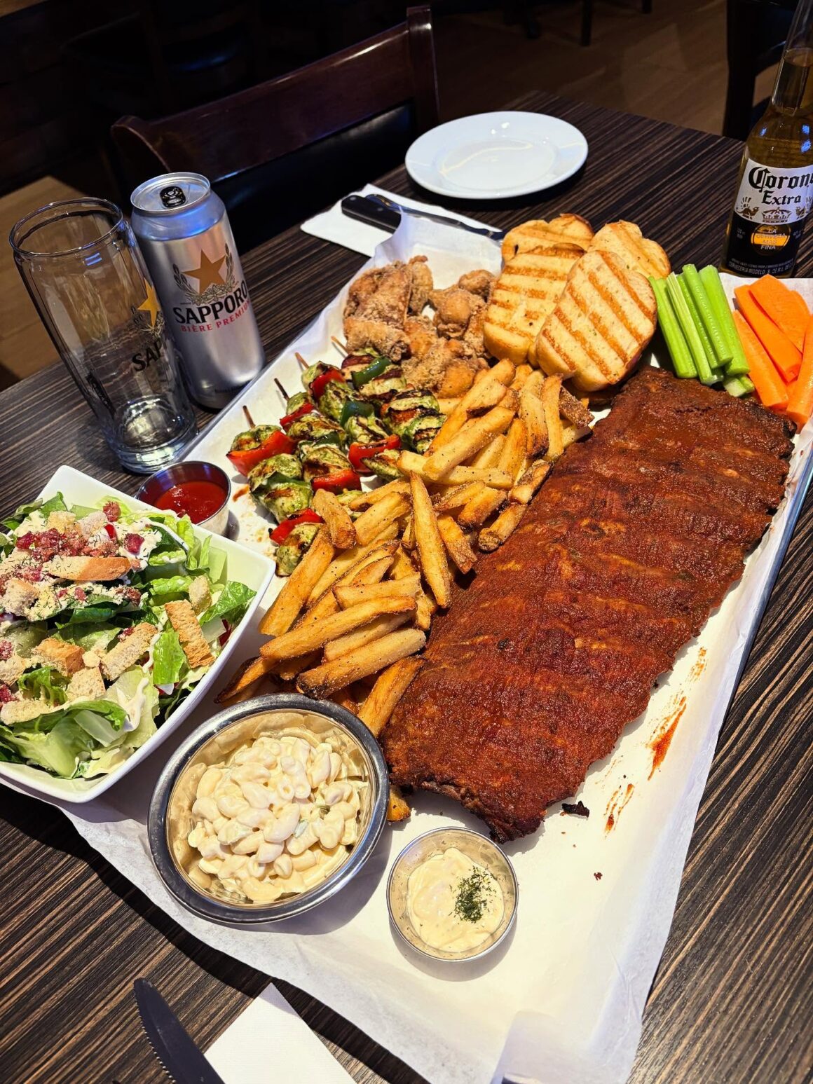Ribs are the star here. They’re tender, smoky, and come in full racks for groups or big appetites.