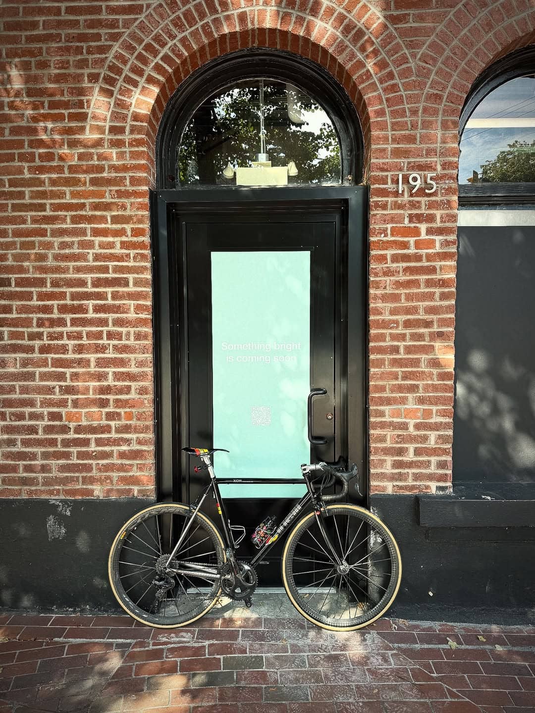 There’s secure bike parking tucked into an enclosed patio, so you can keep an eye on your ride while you sip.