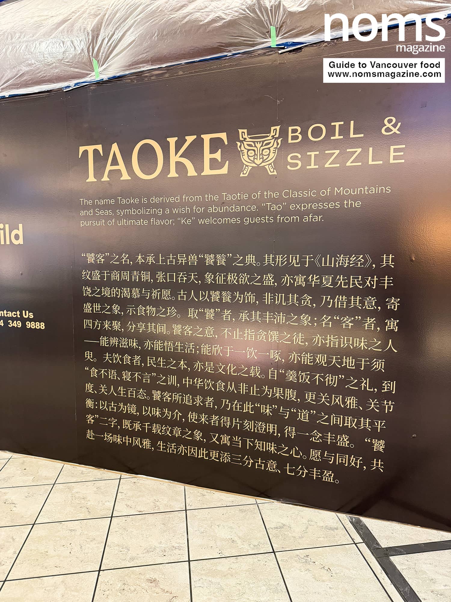 Now the unit is wrapped in black construction signage with gold lettering that reads “Taoke Boil and Sizzle” along with the Chinese characters 饕客 and the tagline “不止于饱,” which roughly translates to “more than just full.”