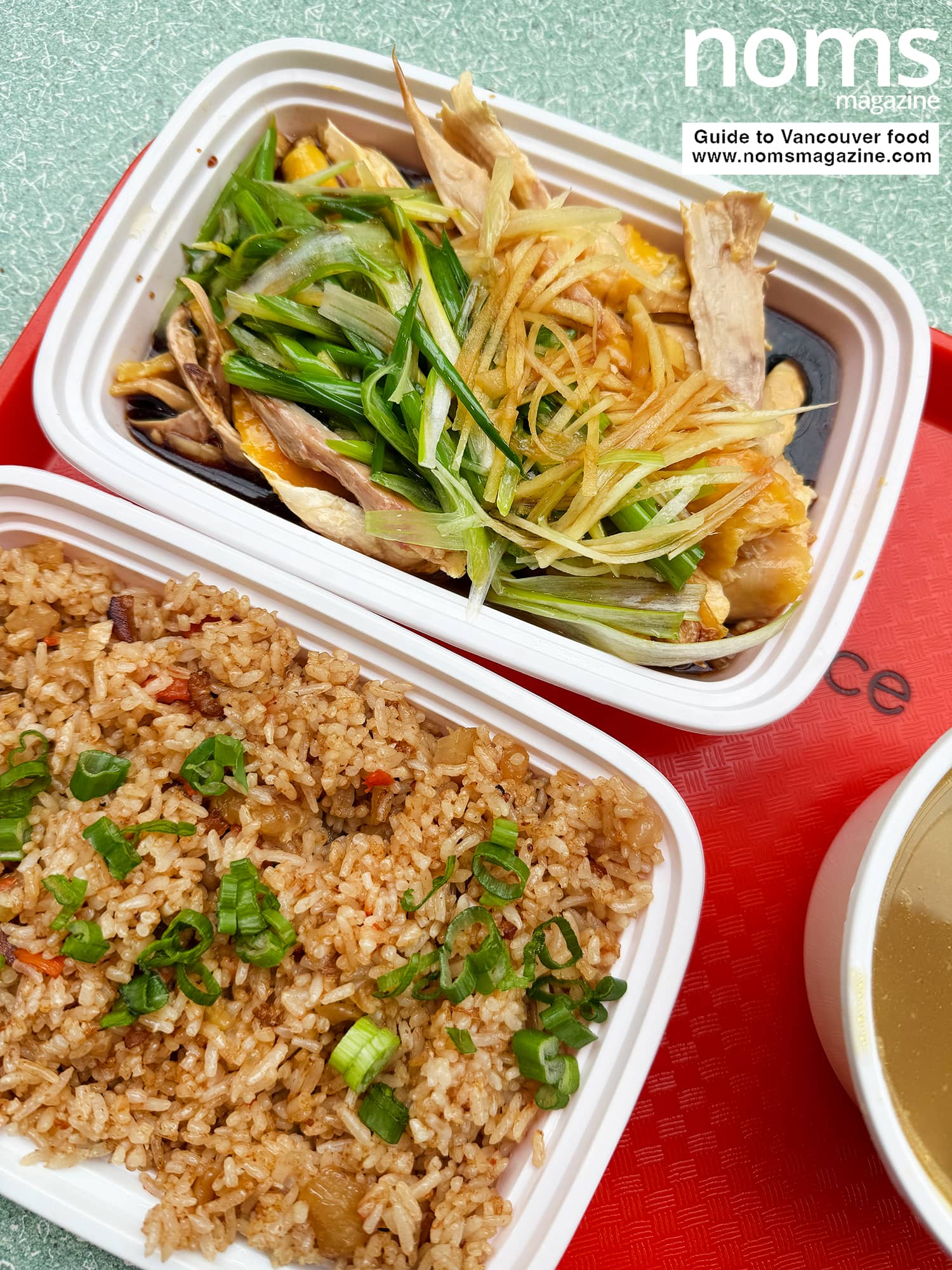The chicken was tender and generously portioned, topped with a pile of julienned ginger and scallions.