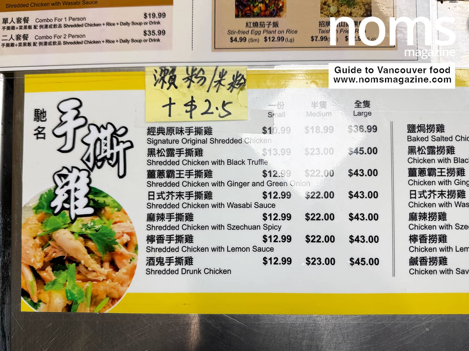 Beyond the rice combos, you can also order shredded chicken by portion size.