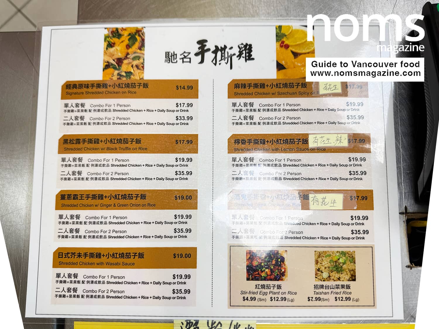 There is the Signature Original starting at $14.99, along with Black Truffle, Ginger and Green Onion, Wasabi Sauce, Szechuan Spicy, Lemon Sauce, and Drunk Chicken, all ranging from $17.99 to $19.00 for a rice combo plate.