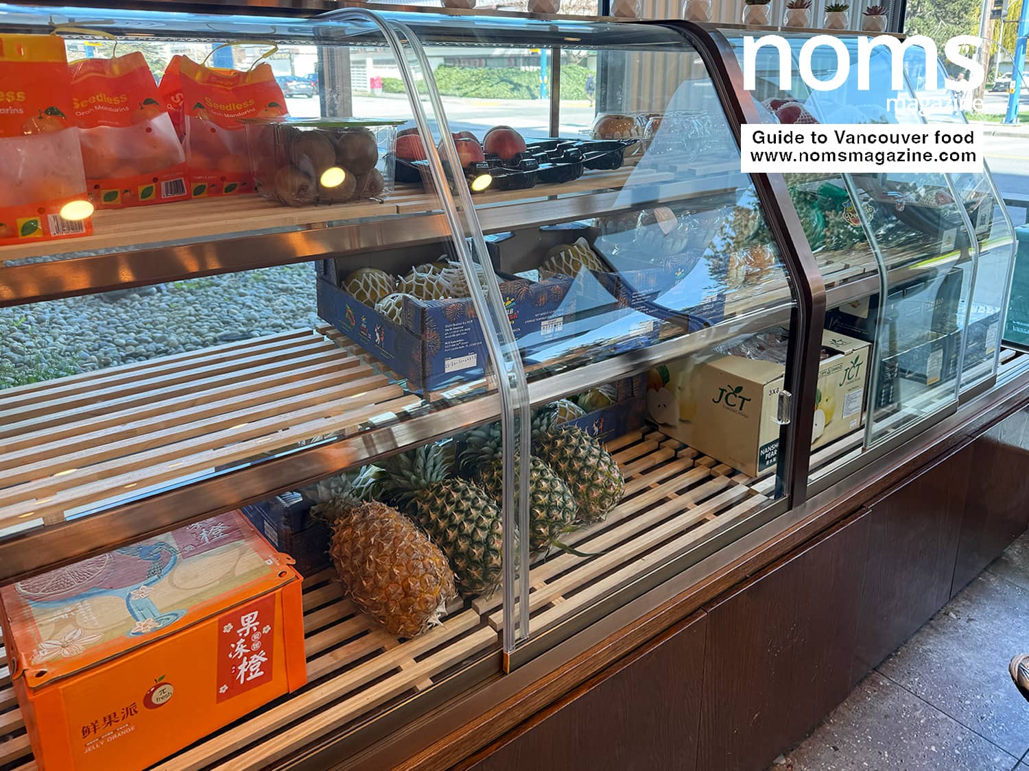 One thing that stands out right away is the display cases filled with fresh fruit, from pineapples and figs to strawberries and kiwi.