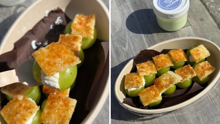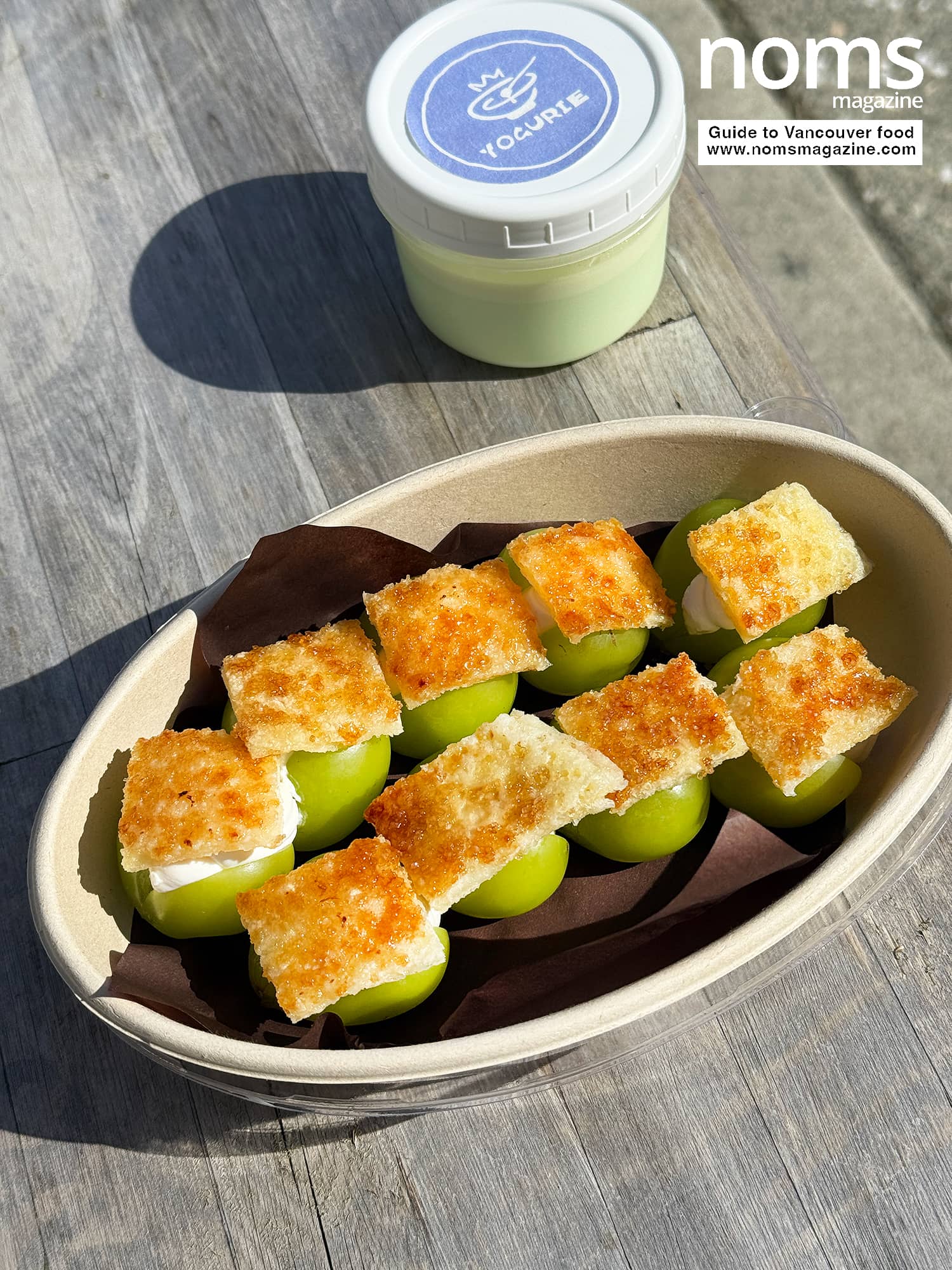 The Shine Muscat bowl came with halved Korean Shine Muscat grapes topped with pieces of grilled milk skin and dried Greek yogurt tucked in between.