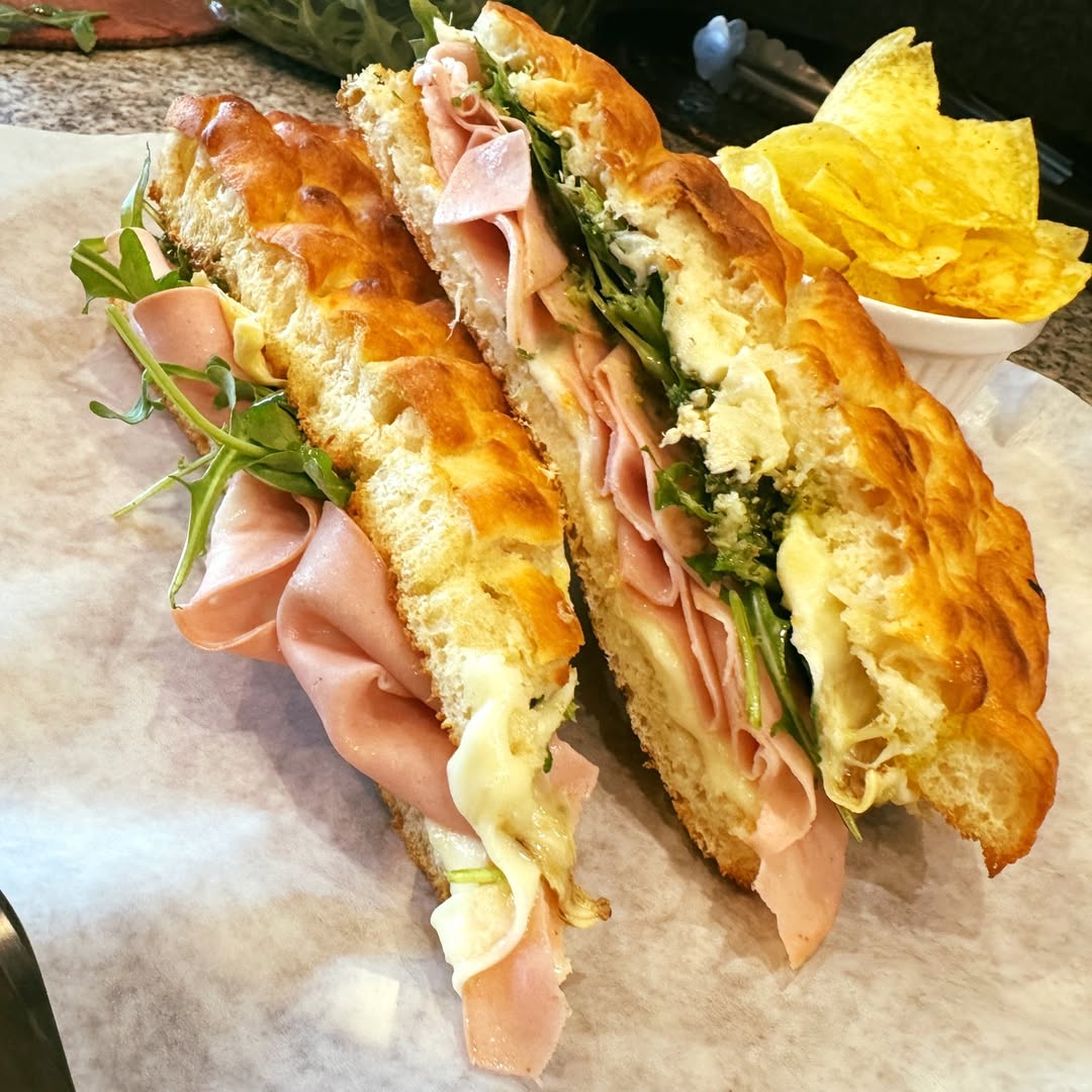 You can also order paninis stuffed with house-made focaccia, salads like caprese or rucola, and even creamy gelato or espresso for dessert.