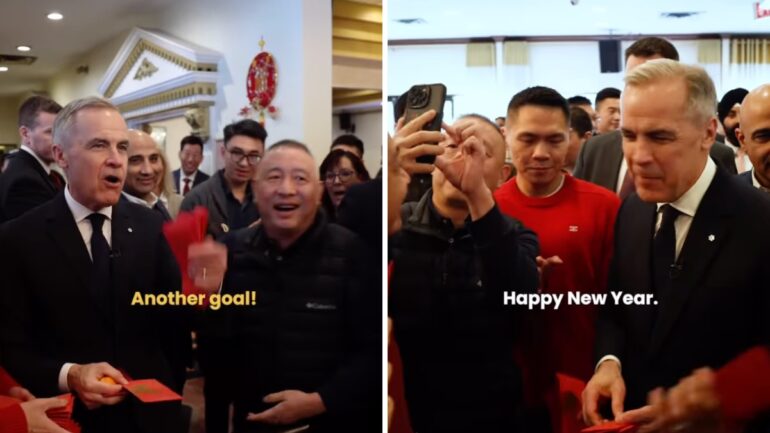Mark Carney was spotted at Continental Seafood Restaurant on February 18, where he was seen enjoying dim sum and handing out red pockets containing gold coin chocolates to celebrate the Lunar New Year.
