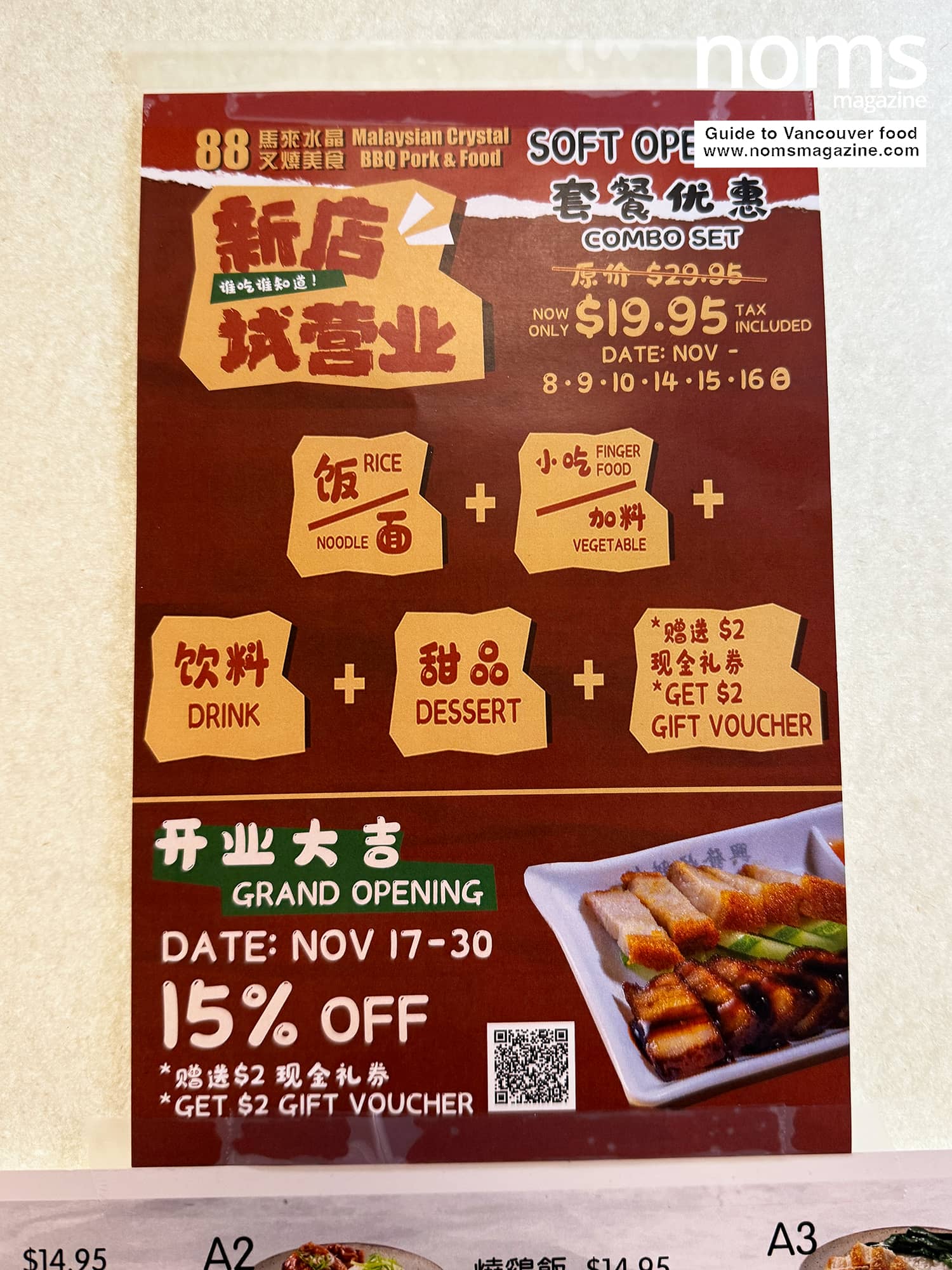 The new tenant is 88 Malaysian Crystal BBQ Pork and Food, and the surprise is that it is run by a team Vancouverites already know well.
