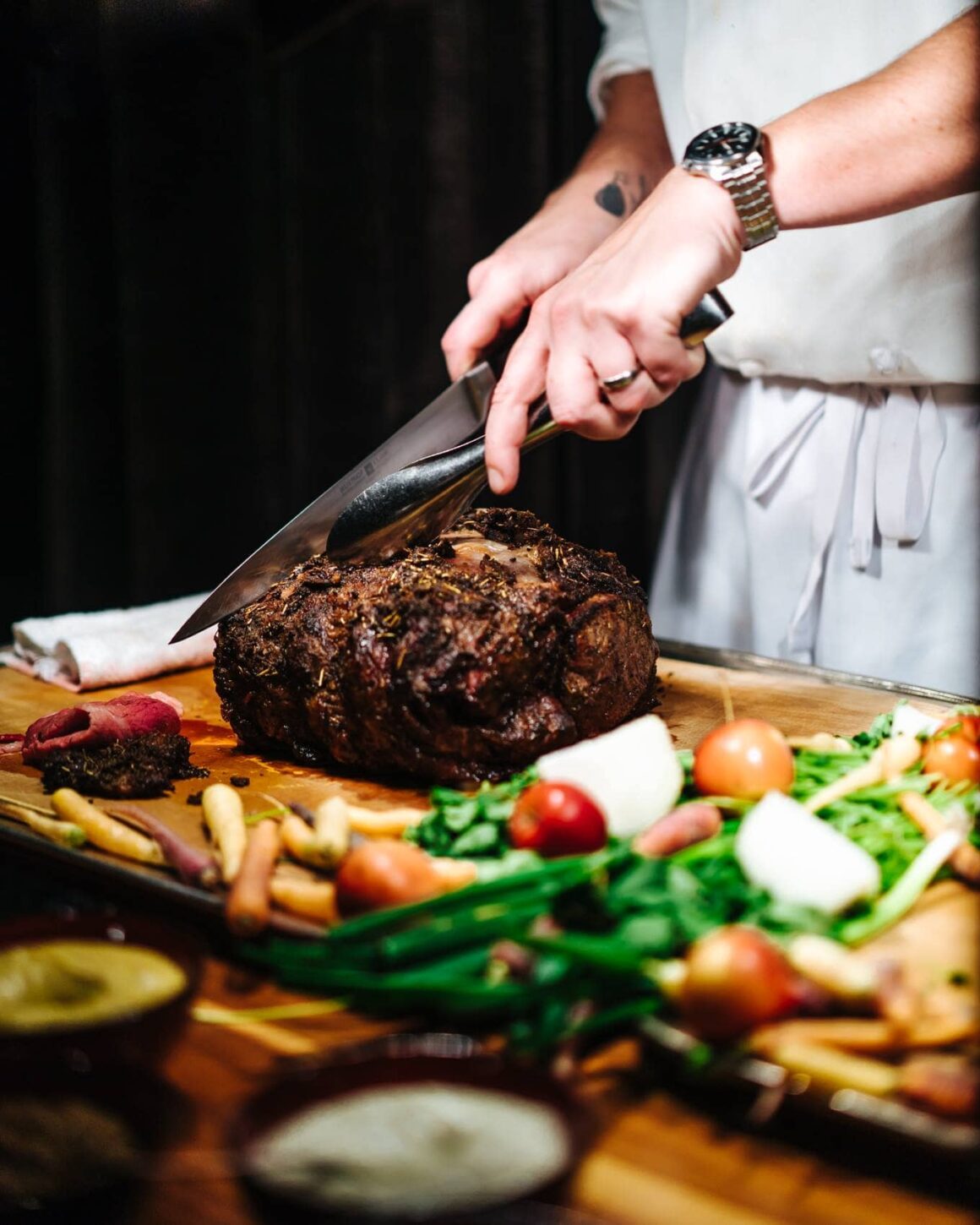 Carving station for traditionalists, omelets and pastries for brunch people, plus a dessert spread for your inner kid.