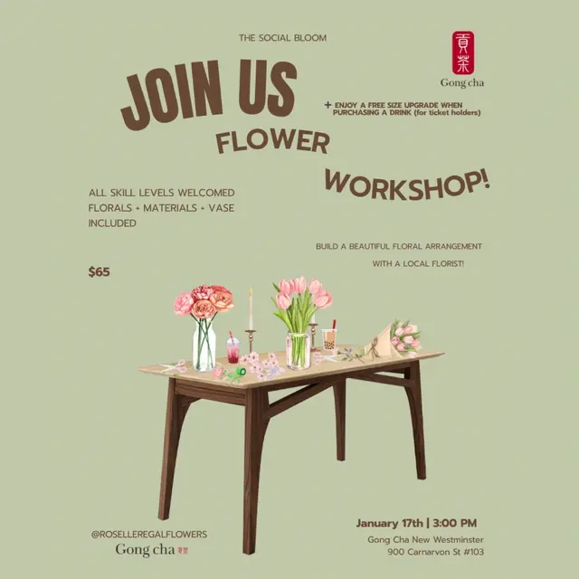 This relaxed, hands-on floral arrangement workshop invites guests to create their own custom bouquet with guidance from a local florist.