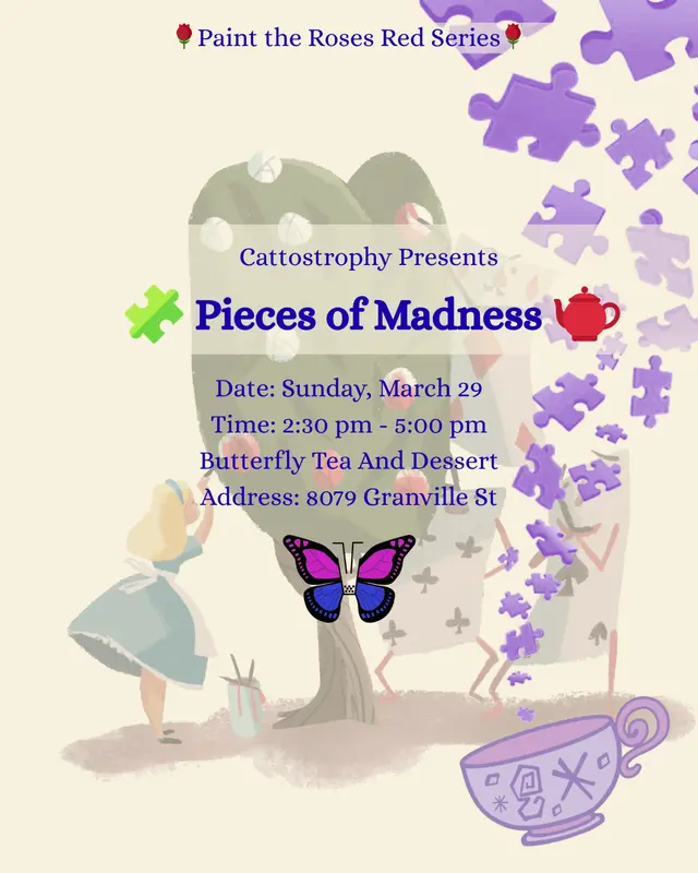 Pieces of Madness is a chaotic twist on a colouring session where each guest gets a random piece of a larger artwork to fill in however they want.