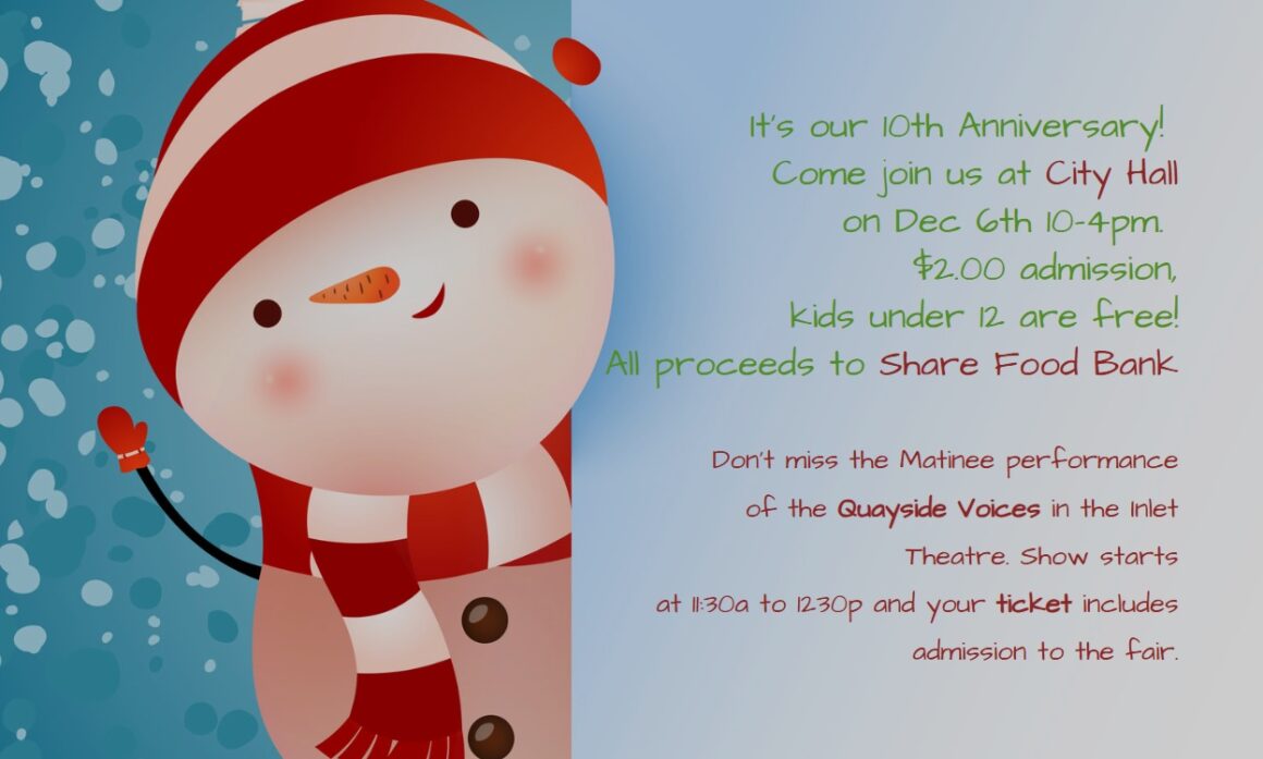 Celebrate the 10th Annual Port Moody Christmas Craft Fair at City Hall on December 6 from 10 AM to 4 PM.