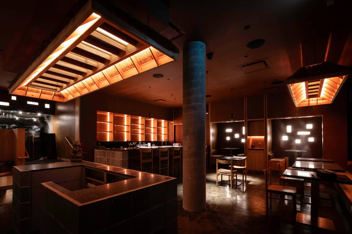 A central bar, booths, and a Chef’s Counter with a direct view of the kitchen create a warm yet sophisticated atmosphere.