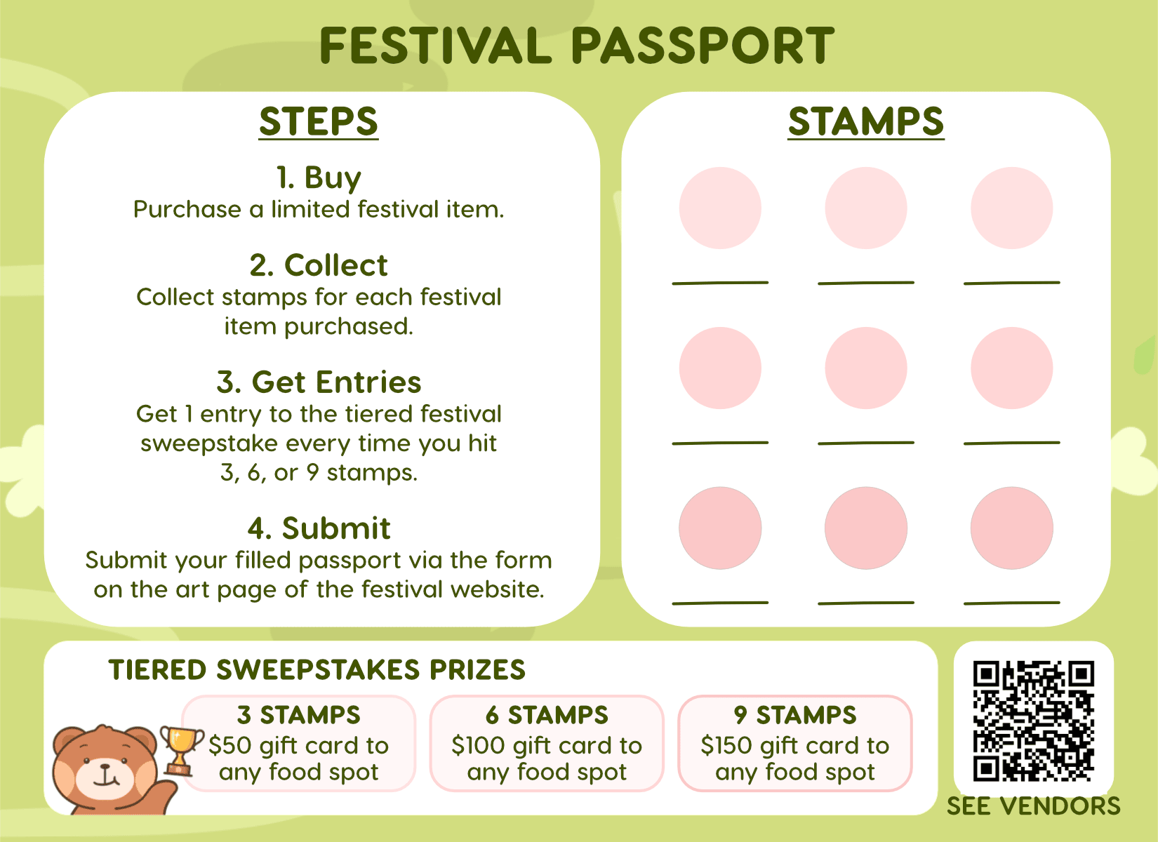Hit a stamp tier? Submit your passport to enter the gift card draws.