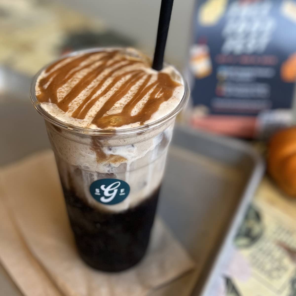 Cinnamon sugar ice cream blended with milk and swirled with cinnamon cream cheese icing. Topped with whipped cream, cinnamon sugar and a mini cinnamon roll.
