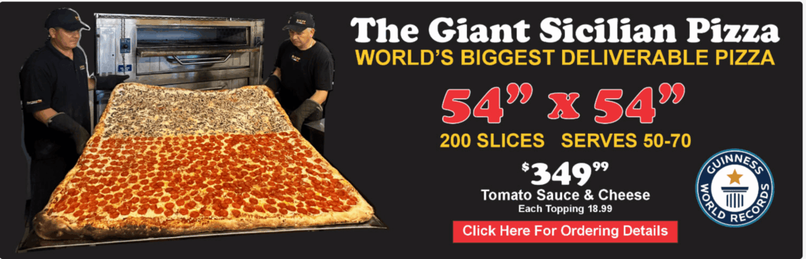 Their Giant Sicilian measures a wild 54 inches by 54 inches, which equals two hundred slices and feeds fifty to seventy people.