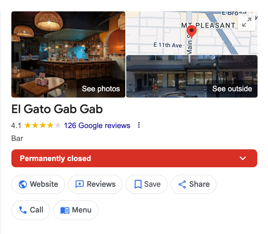 A quick search online confirms that El Gato Gab Gab is now marked as permanently closed on Google.