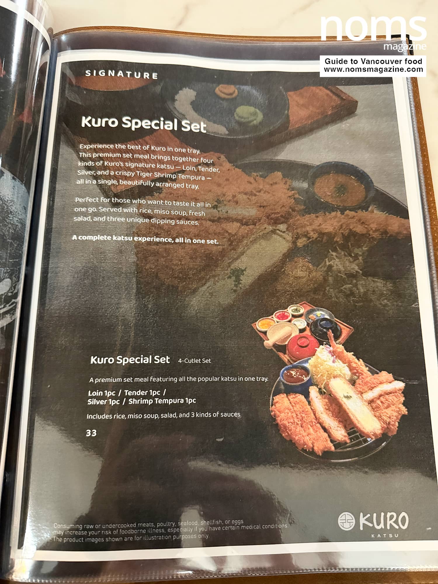 Diners can enjoy pork tenderloin and loin katsu made with premium cuts, crispy chicken karaage, and a signature Kuro Special Set that combines multiple cuts of katsu with shrimp tempura on one plate.