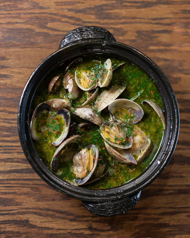 On the vegan side, the menu leans into comfort and more snacky energy, like bread and butter with rotating sourdough, a seitan chorizo cheese dip, and even a poutine made with cashew cheese curds.