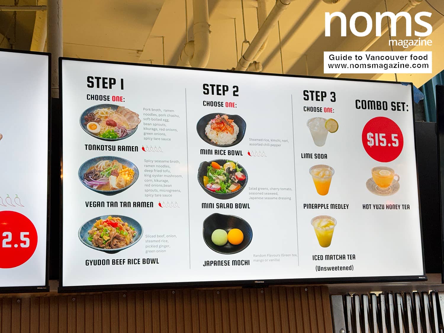 Combo sets are also available, letting diners pair ramen or rice bowls with side dishes like salad or mochi, and drinks such as iced matcha tea or hot yuzu honey tea for $15.50.
